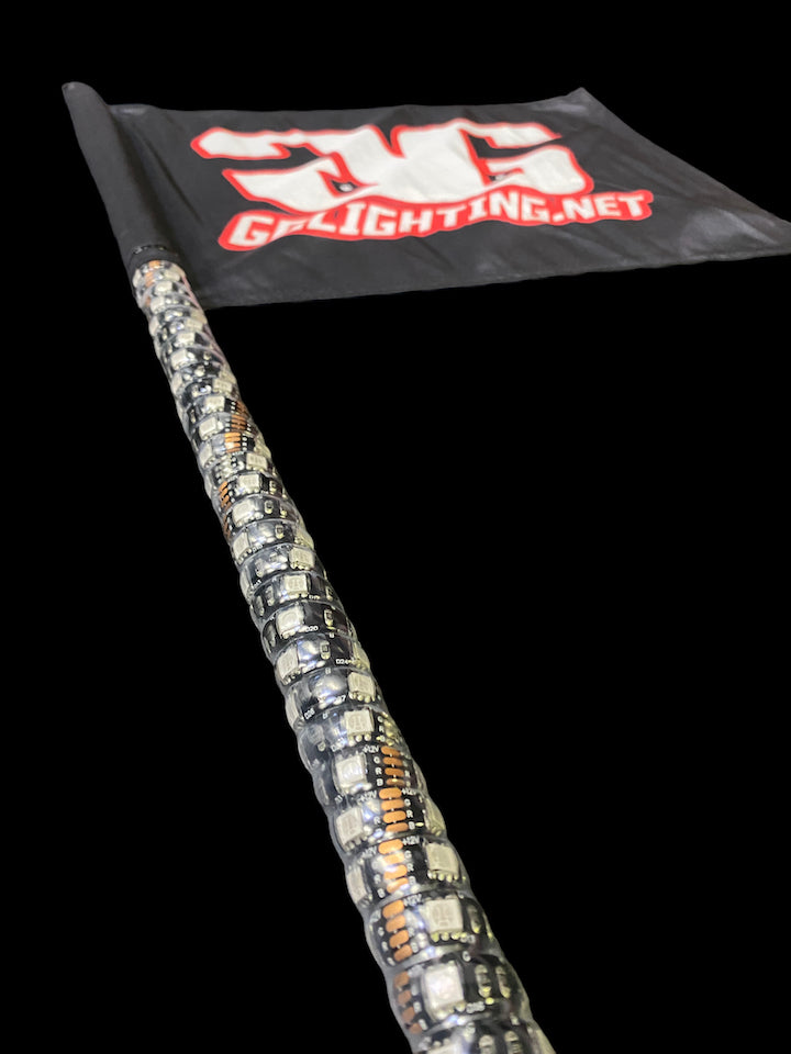What makes these whips different compared to our competitors? Our 2nd Generation whips are significantly thicker, eliminating the "whipping" back and forth while driving. These whips are made of a more durable material utilizing both fiberglass and poly-carbonate construction. These whips are also brighter compared to our original style and versus other brands.