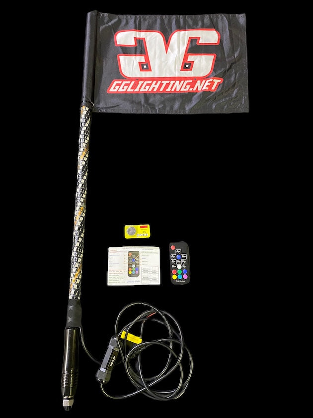 3' RGB Multicolor Lighted Whip With Quick Release Base & Remote