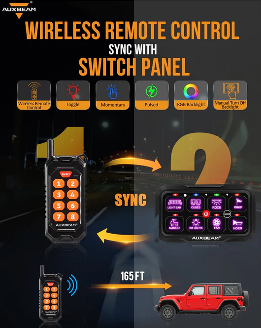 We've made some big upgrades to the switch panel! RC-800/RA84 series switch panel has 2 operating modes for you to choose from. Switch panel direct operation, as well as remote control. The wireless remote control has a connection range of up to 165ft/50m.And one circuit control box can simultaneously pair with four wireless remote controllers. One remote control can control two sets of RC-800/RA84 switch panels.