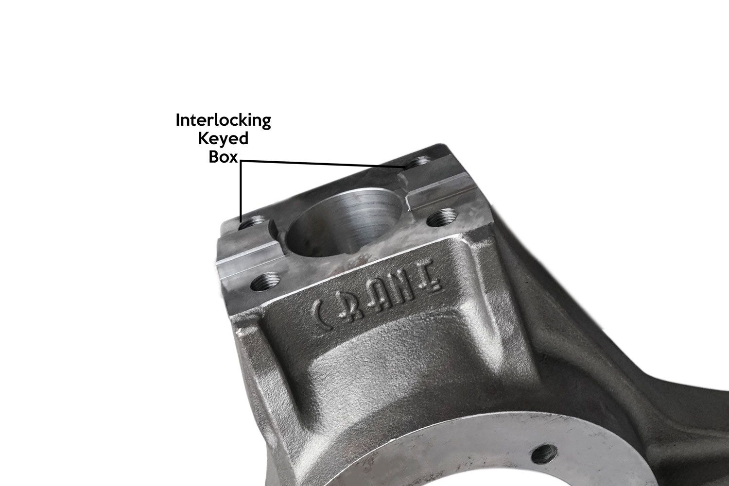 No need to worry about sheered bolts. The Crane Axle High Steer arms are keyed to interlock with the top of the GM Dana 60 Knuckles. This puts the stress that can occur on high steer arms onto the knuckle.